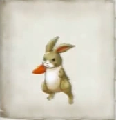 - "A rabbit that always carries around a carrot. They steal their carrots from local farms, so the farmers are always having to chase them off."