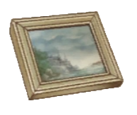 - "Nobody knows who painted this. It shows a castle facing a lake and a forest. You'll find these laying on the ground. Maybe the artist is a wanderer...?"